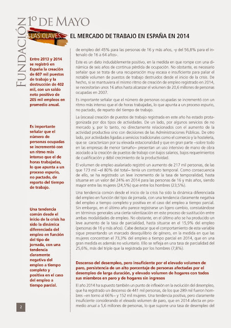 INFORME "EL MERCADOD E TRABAJO EN ESPAÑA EN 2014". FUNDACIÓN 1º DE MAYO